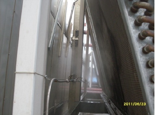 中央空調節(jié)能改造噴霧降溫裝置對冷凝機組各設備無需進行改動或安裝位置的調整,只需在冷凝器的翅片下方安裝霧化噴頭,對室外空間有限的場所非常有效,還適用于對現(xiàn)有冷凝機組的改造。經(jīng)試驗測試,北京分公司京門大廈五層北側的機房專用空調室外冷凝壓力在最炎熱夏季從原先的2324kgf/cm2降低至1819kgf/cm2,下降4-5kgf/cm2。既冷凝溫度從60降低至5010度之多,根據(jù)上述概算公式,粗略推算出機組的節(jié)能效率約為20%。